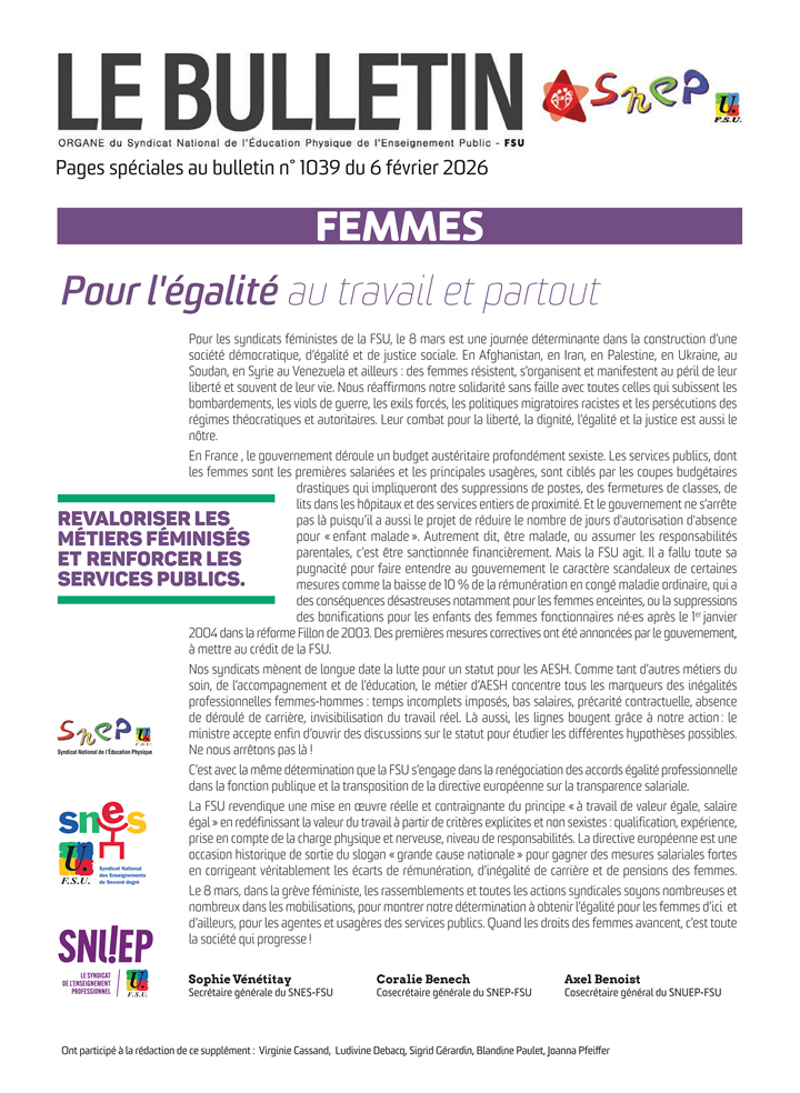Nos syndicats mènent de longue date la lutte pour un statut pour les AESH. Comme tant d’autres métiers du soin, de l’accompagnement et de l’éducation, le métier d’AESH concentre tous les marqueurs des inégalités professionnelles femmes-hommes : temps incomplets imposés, bas salaires, précarité contractuelle, absence de déroulé de carrière, invisibilisation du travail réel. Là aussi, les lignes bougent grâce à notre action : le ministre accepte enfin d’ouvrir des discussions sur le statut pour étudier les différentes hypothèses possibles.