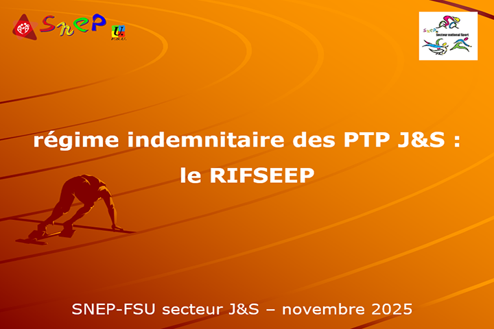 Diaporama SNEP-FSU sur le régime indemnitaire des PTP J&S mis à jour en 2025