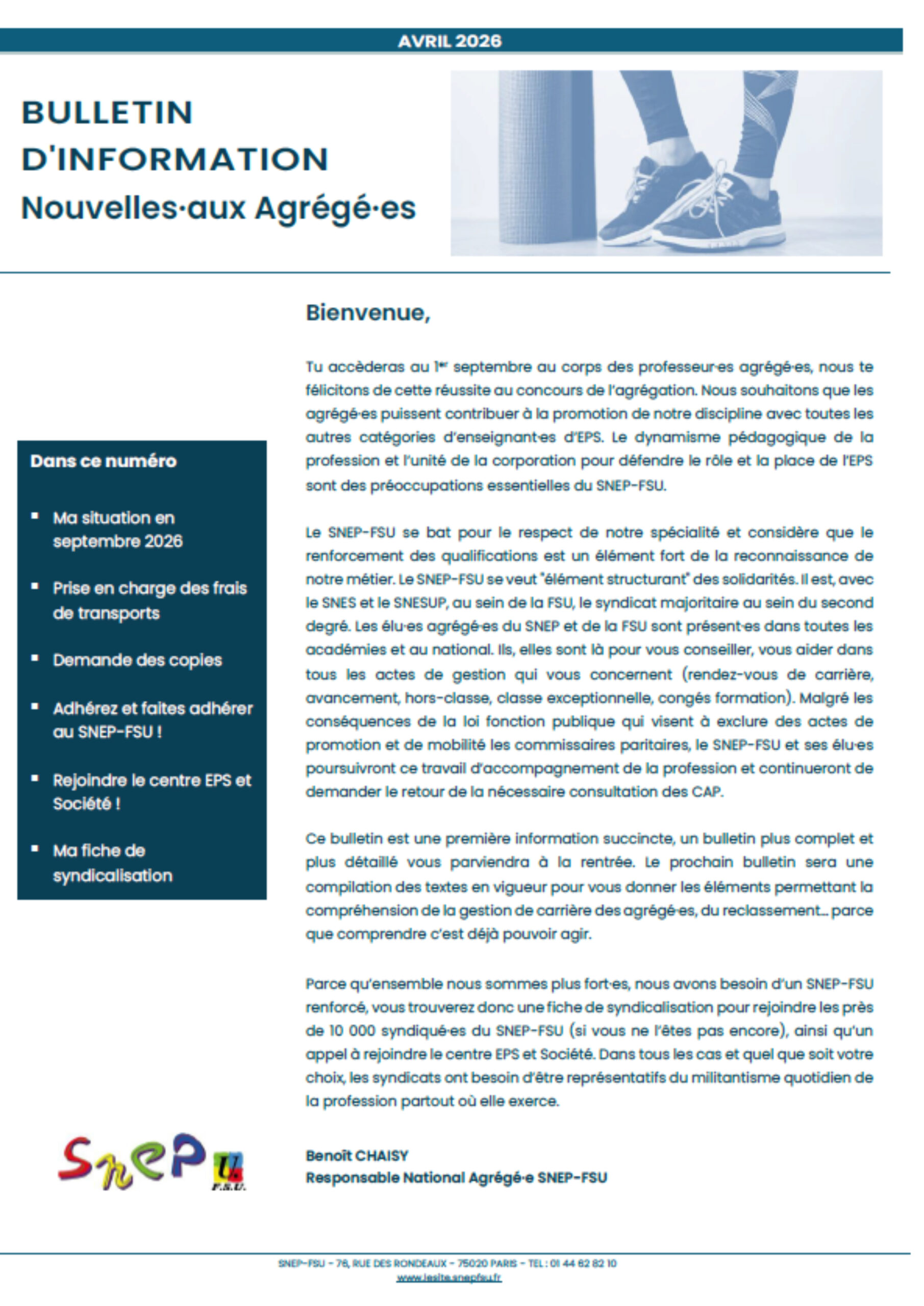 Bulletin d’information Nouvelles.aux agrégé.e.s – Avril 2026